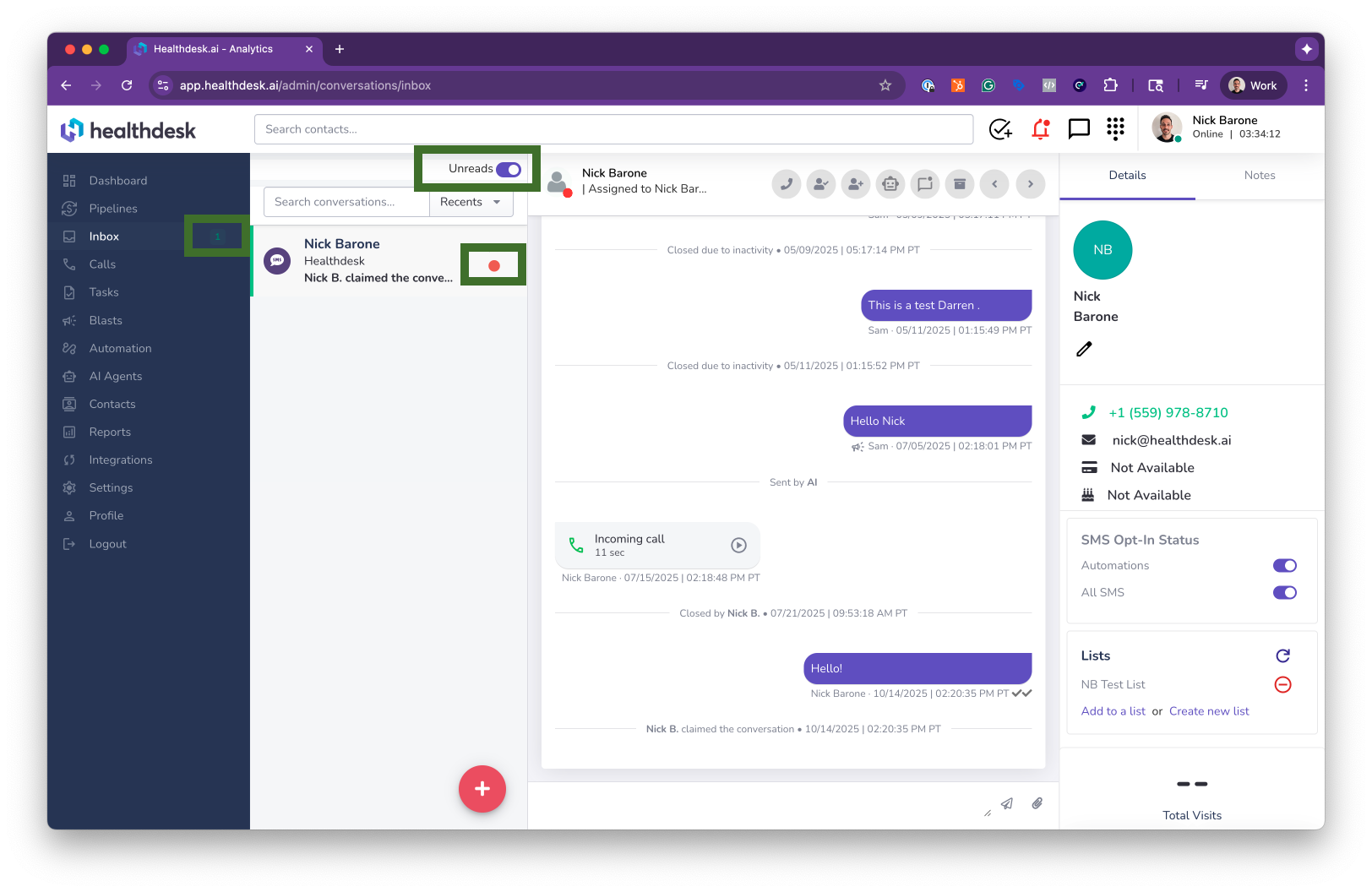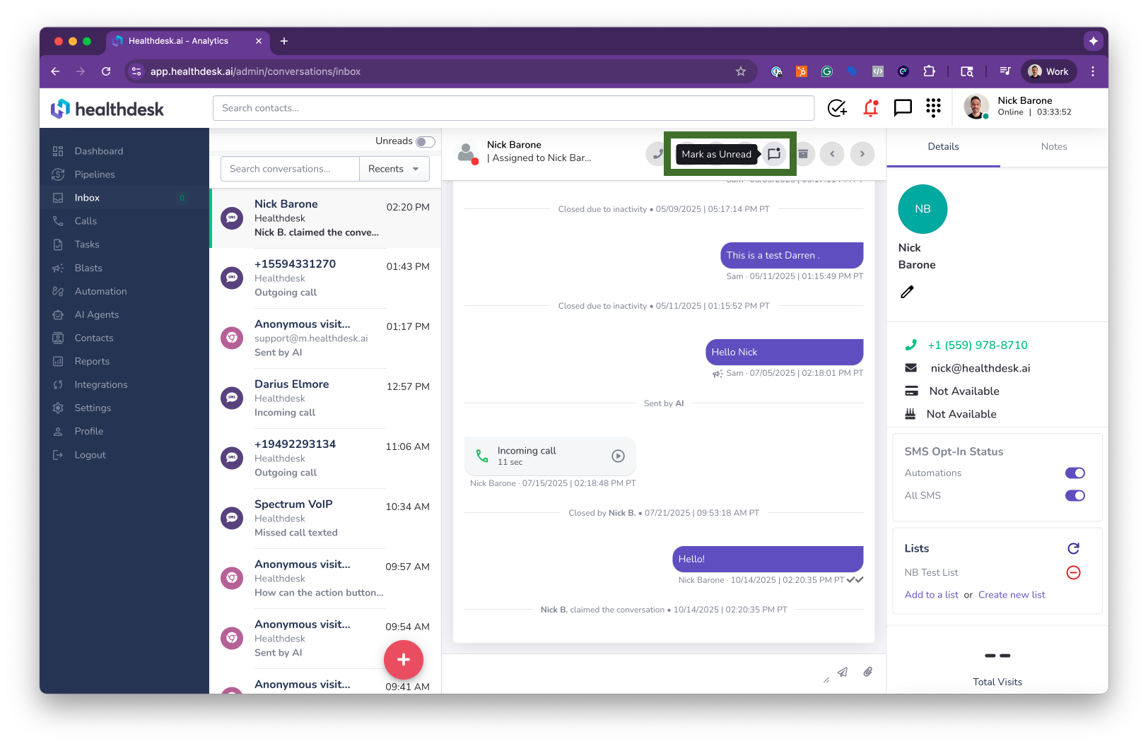How to Mark Conversations As Unread in the HealthdeskAI Inbox