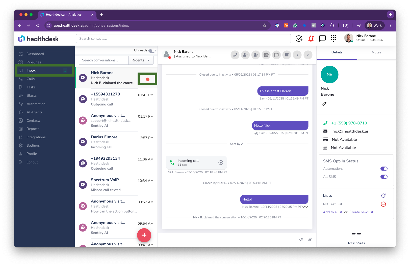 The Mark as Unread feature in HealthdeskAI helps you stay organized and on top of client communication. When you mark a conversation as unread, it remains highlighted in your Inbox so you can easily find and return to messages that still need attention or follow-up.