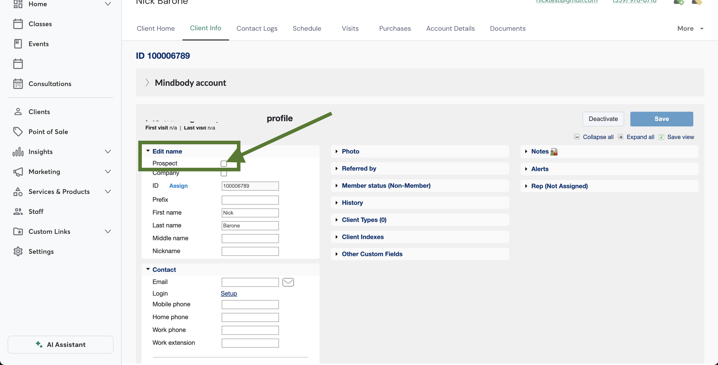 In Mindbody, open the person’s profile.